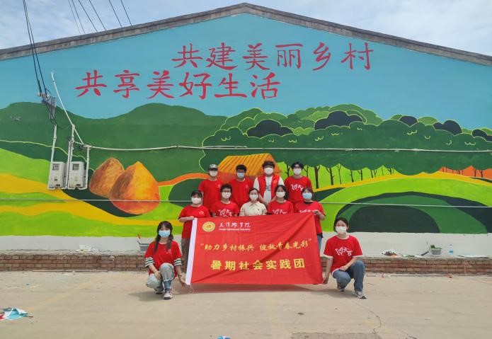 近日,beat365手机版官网“助力乡村振兴 绽放青春光彩”暑期社会实践团奔赴天津市宝坻区新开口镇,开展了为期4天的暑期“三下乡”社会实践活动。实践团由园艺园林学院11名师生组成,从开展理论宣讲做好思想引领,到寻访红色故事传承革命精神;从调研产业基地体悟乡村振兴,到志愿清扫服务打造宜居乡村;从支教暖心帮扶助力教育振兴,到绘制主题墙绘建设美丽乡村……天农学子以丰富的理论知识、扎实的专业技能、真诚的服务态度体悟乡村发展,助力乡村振兴。