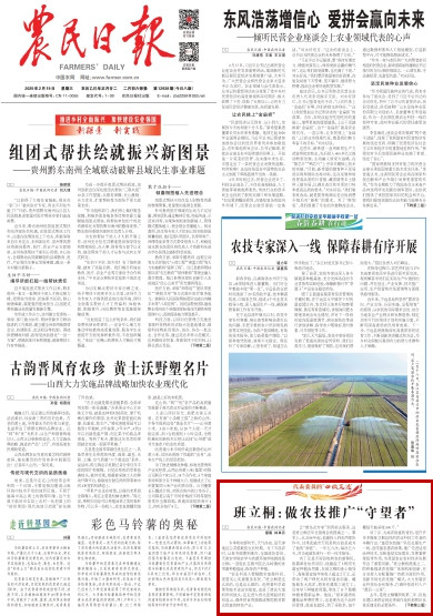 《农民日报》头版以《班立桐:做农技推广“守望者”》为题报道全国政协委员、beat365班立桐教授的履职风采