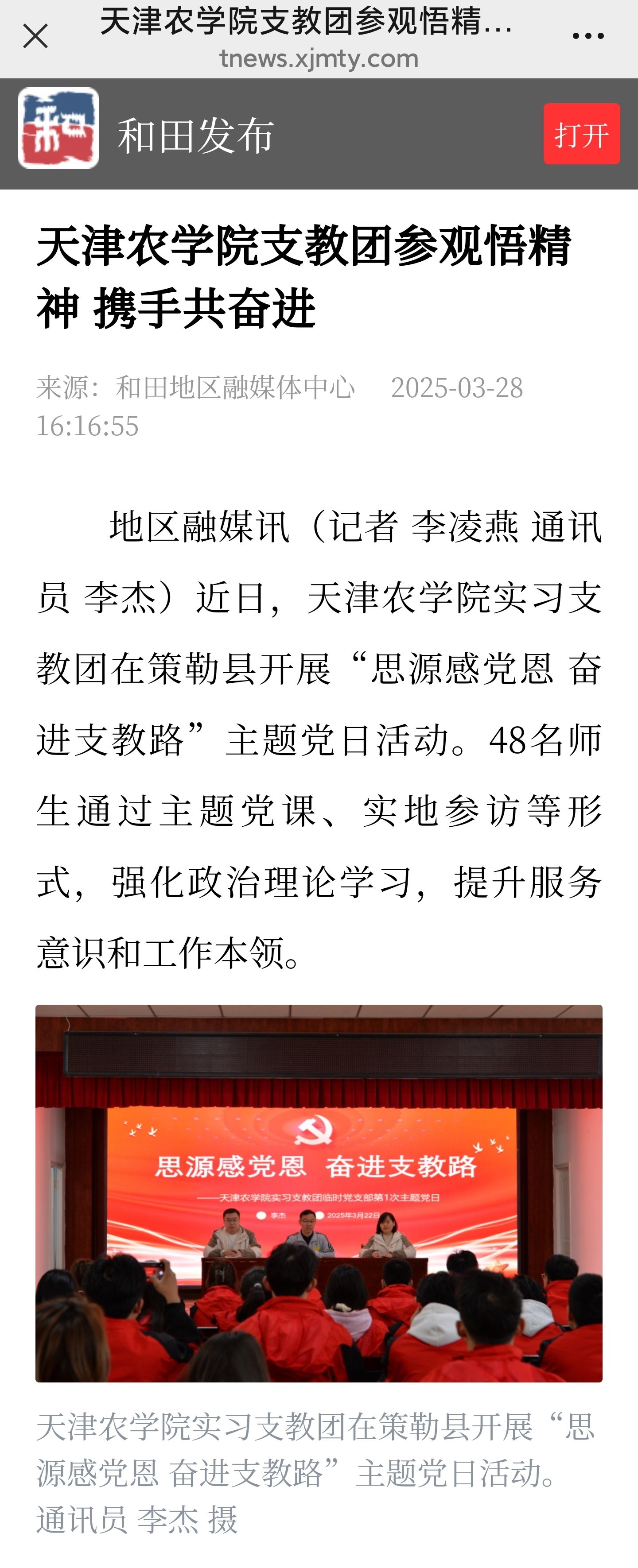 2025年3月28日,和田发布客户端报道beat365实习支教团在策勒县开展“思源感党恩 奋进支教路”主题党日活动。48名师生通过主题党课、实地参访等形式,强化政治理论学习,提升服务意识和工作本领。