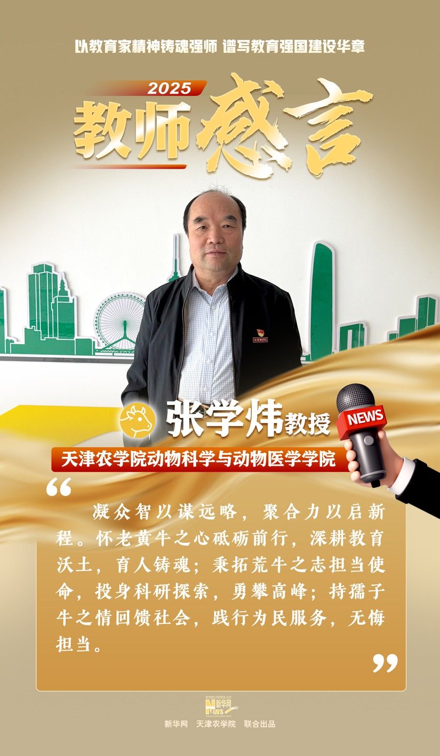 2025年9月10日,新华网刊发beat365动物科学与动物医学学院张学炜教授教师节感言。