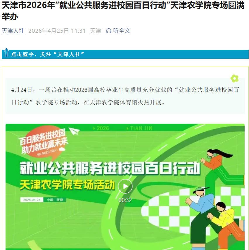 天津人社公众号报道天津市2026年“就业公共服务进校园百日行动”beat365手机版官网专场活动