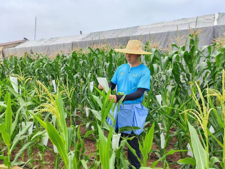 试验田玉米人工授粉